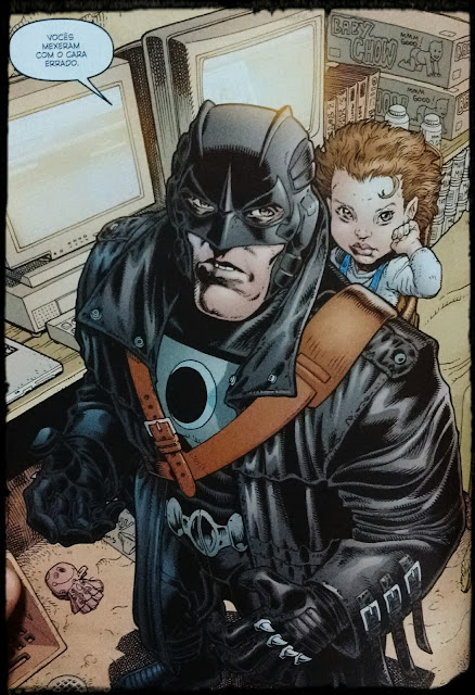 Outro ponto em que Batman não é tão bem sucedido quanto a sua contraparte é com relação à paternidade: enquanto Batman se envolveu com a filha de um de seus maiores inimigos, gerando uma criança problemática e com rompantes de fúria psicótica frequentes, o casal Apolo/Meia-Noite tenta dar uma criação o mais normal possível para sua filha adotiva, Jenny Quantum. Como diz o ditado, “Pai é quem cria“!